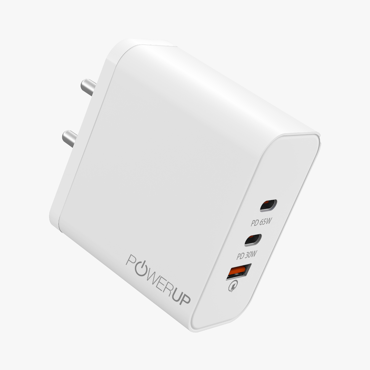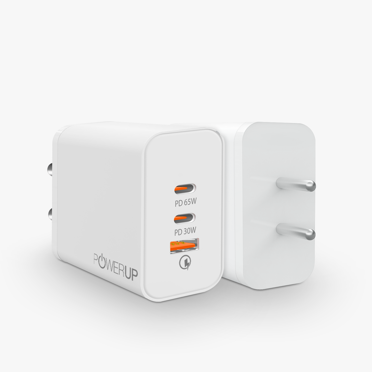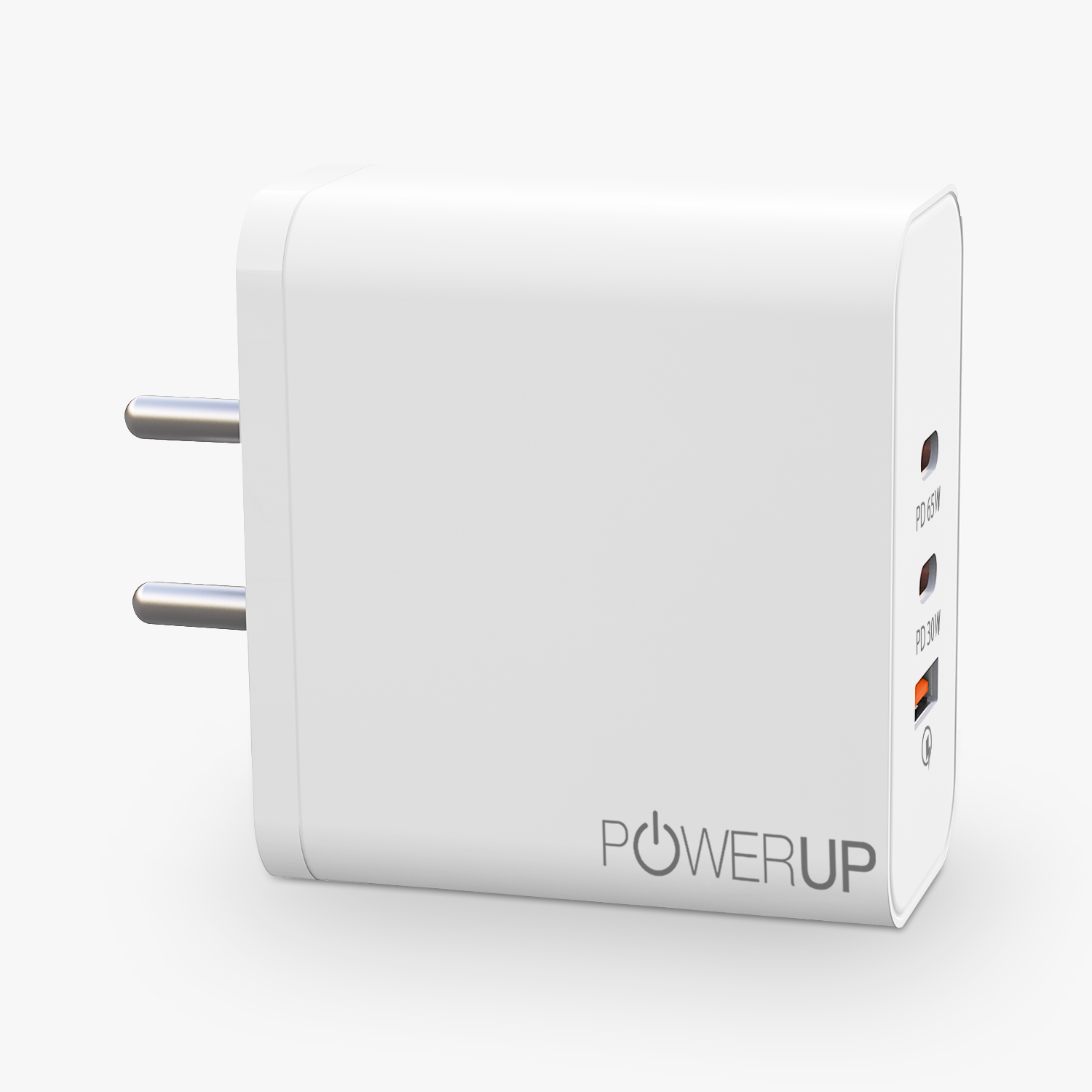 POWERUP Turbo 100W PD Type C + USB QC 3.0 GaN Wall Charger - White